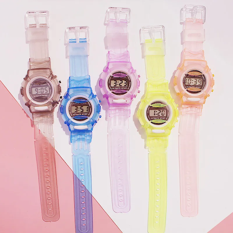| Transparent Silicone Strap Kid Watch Children Digital Waterproof Sport Ladies Watches Simple Girl Cherry Pink Clock montre fille |
