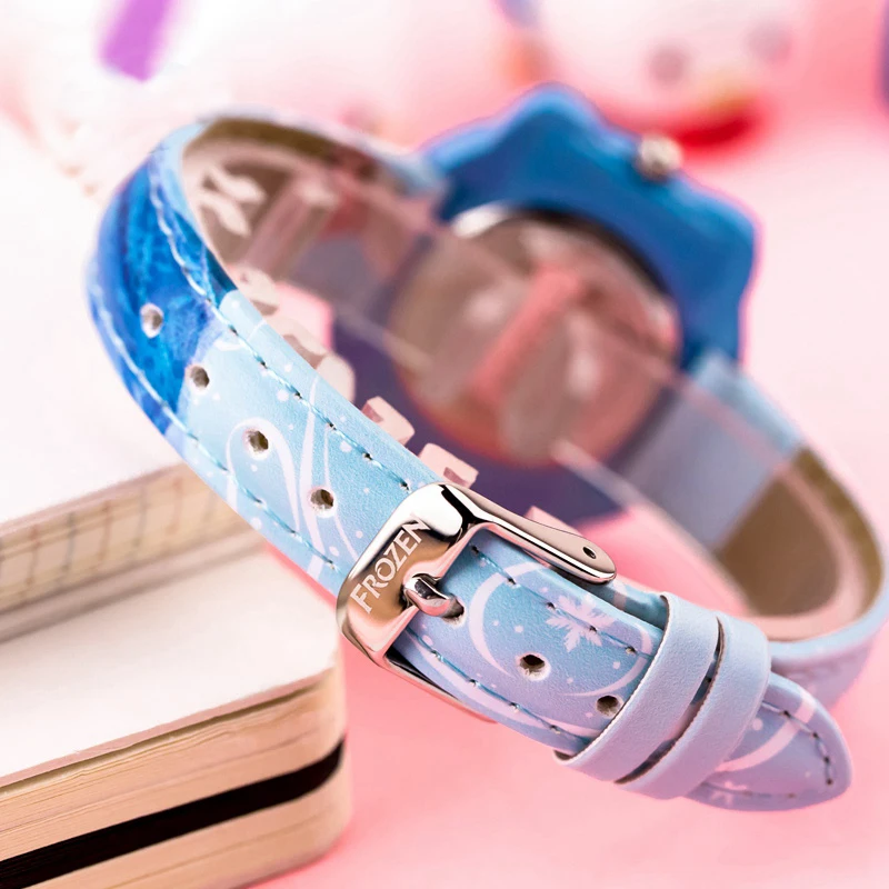 | Original Frozen Elsa Princess Kids Bling Rhinestone Child Sweet Candy Nice Dream Snow Well PU Band Watch Disney Blue Pink Hour |