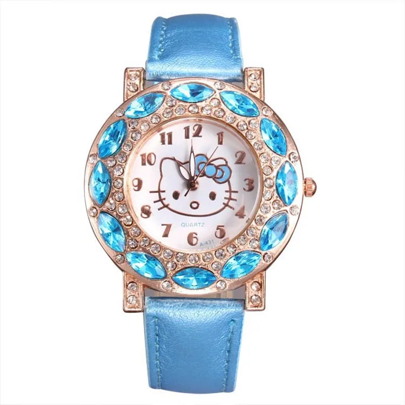 | Hello Kitty Crystal Dial Rhinestone Quartz Watch hodinky Ladies Kids Girls Baby Leather Strap Watch ceasuri Gift Relojes Mujer |