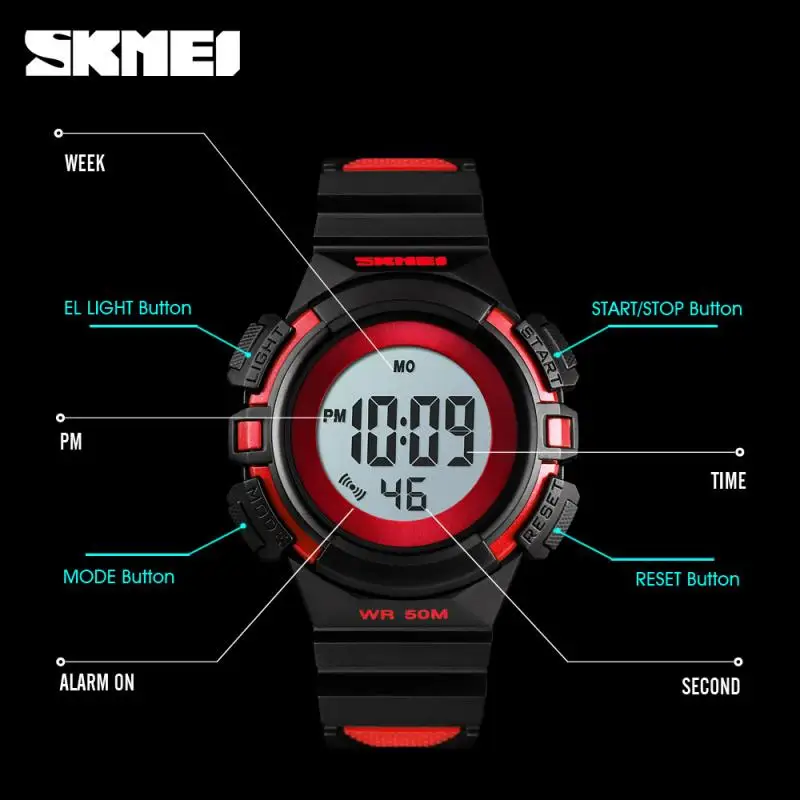 You are looking for "SKMEI Outdoor Sport Kids Watches Luminous Digital Wrist Watches Fashion 50M Waterproof PU Wristband Children Boy Girl Watch" , this product is ready to be purchased. don't forget to bookmark this site, so you can come back here anytime. Get special discount by shopping on aliexpress site, because new buyers will get a decent discount coupon. To buy this product, please click the buy link bellow.