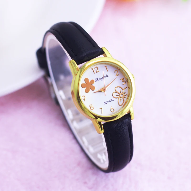 | 2019 famous brand children girls women flower clover small leather quartz watches kids students fashion birthday gifts clocks |