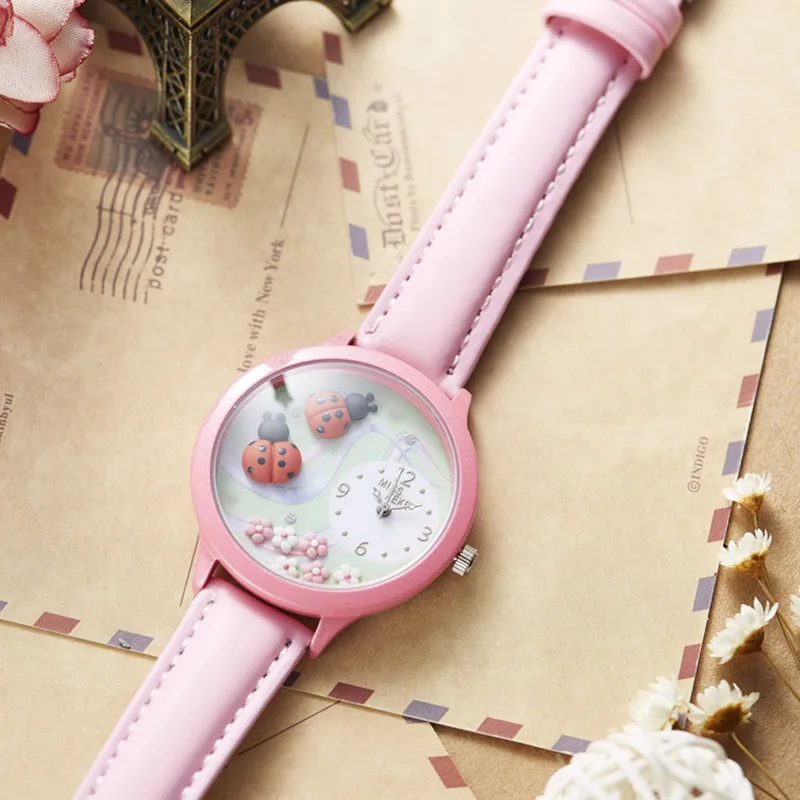 | 3MISS KEKE 3D clay cute mini world golden retriever Rhinestone watches Relogio Feminino Ladies Women quartz leather Wristwatches |